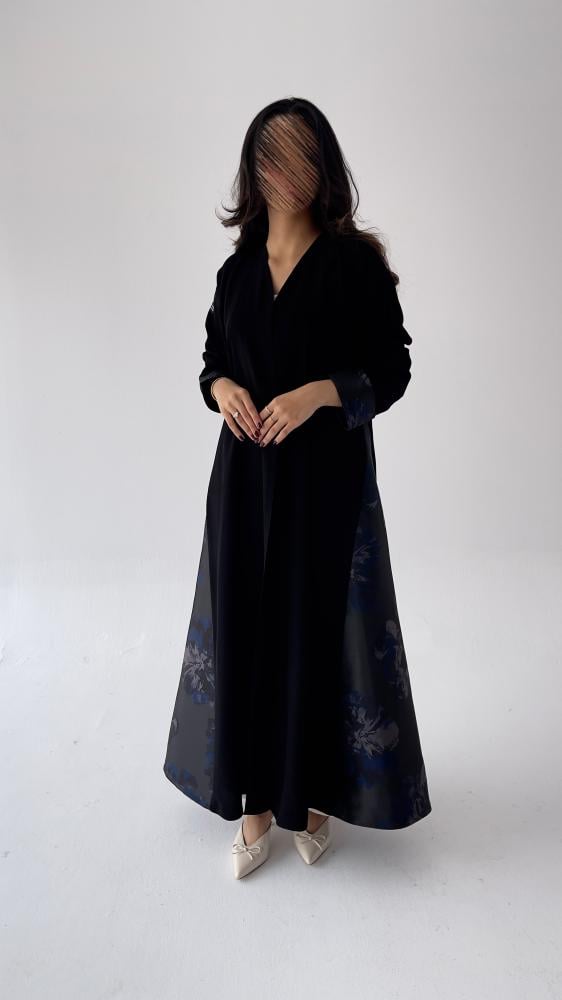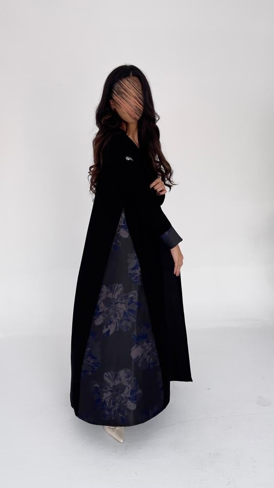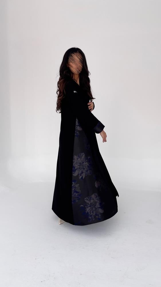 تصميم كلوش بخامة الكريب الملكي الكوري الفاخرة، تتزين بلمسات الجاكار المطرز بورود ملونة، إطلالة أنثوية فاخرة تلفت الأنظار.