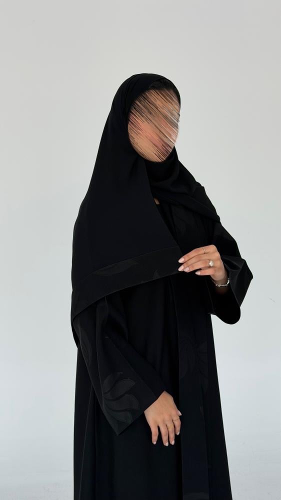- طرحة مجانية من قماش ليزر كوري بتطريز جاكار ناعم على الأطراف لإكمال الإطلالة.