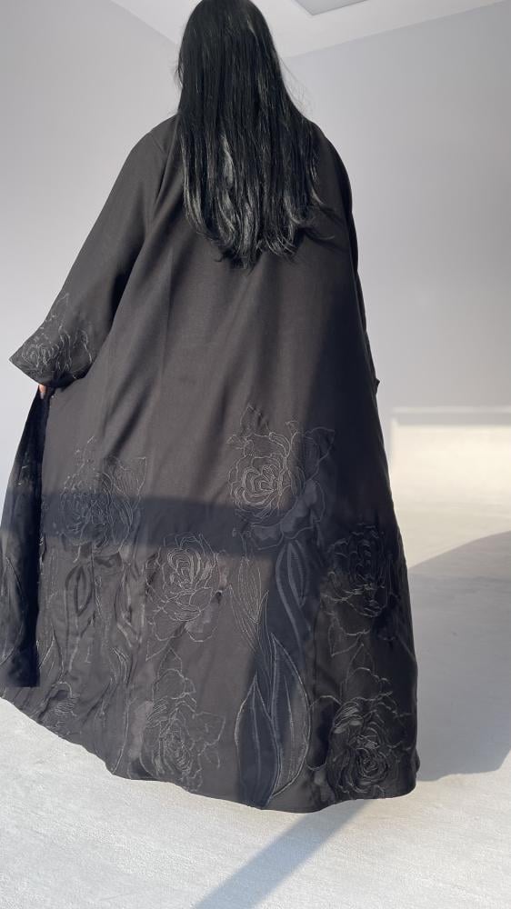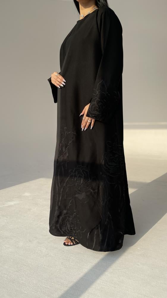 - نوع القماش: كتان منميت كوري مطرز بلون أسود.